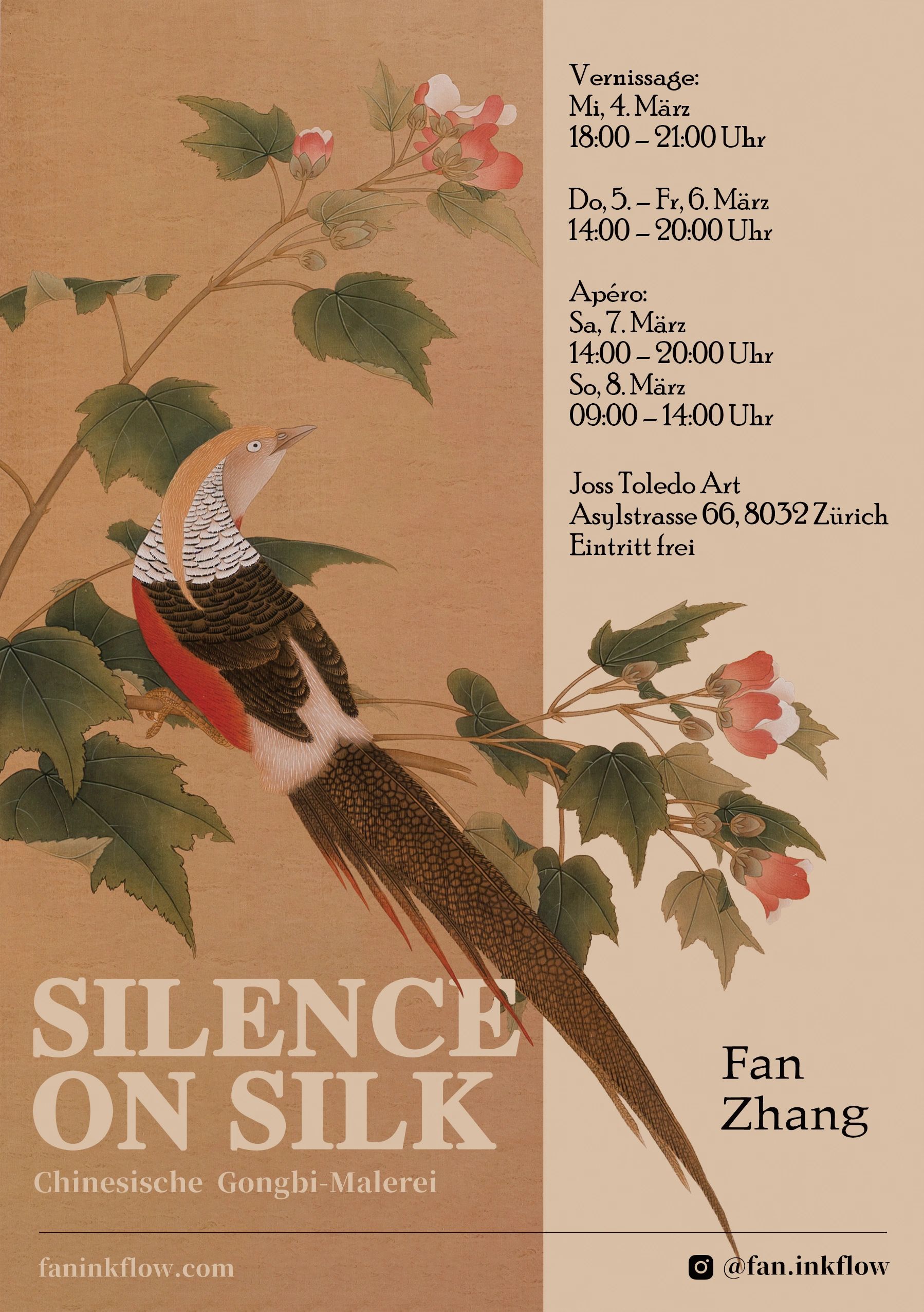 Through meticulous brushwork and countless layers of translucent washes, I seek to reveal the living spirit of nature—from the finest vein of a flower to the alert gaze of a bird. Painting is my practice of silence, a way to translate the quietude of the heart onto the stillness of the silk.